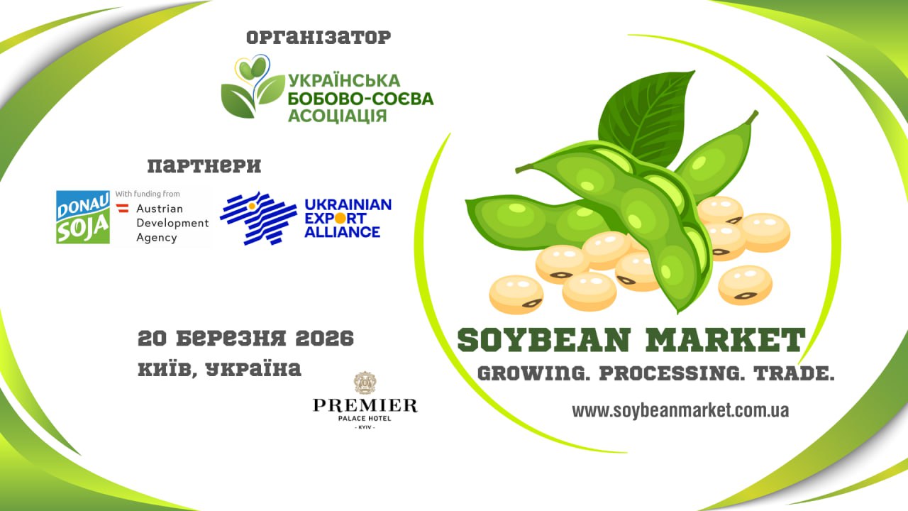 20 березня 2026 року в Києві відбудеться галузева конференція Soybean Market: Growing. Processing. Trade, організована Українською бобово-соєвою асоціацією. Подія об’єднає виробників, переробників, трейдерів, експортерів, аналітиків і представників влади навколо ключового питання — як посилити позиції української сої на внутрішньому та зовнішніх ринках.