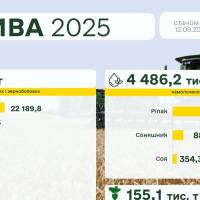 Станом на 12 вересня 2025 року в Україні вже зібрано 29 150 тис. тонн зернових культур на площі 7 007,9 тис. га. Обмолочено 62% площ, засіяних цими культурами. Зокрема: Пшениці – зібрано 22 189,8 тис. тонн на площі 5 008,2 тис. га. Ячменю – зібрано…