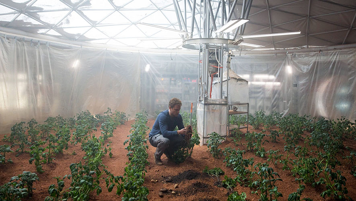 Фантастика стає реальністю: Астронавт Марк Уотні (актор Метт Деймон) вирощує картоплю на Марсі у фільмі "Марсіанин".