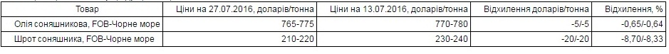 Експортні ціни на український соняшник станом на 27 липня були на рівні 370-380 дол./тонна на умовах FOB-Чорне море.