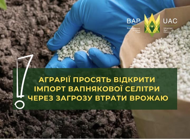 Всеукраїнська Аграрна Рада рада спільно з Ukrainian Agribusiness Club звернулися до Міністерство економіки, довкілля та сільського господарства України із закликом терміново дозволити імпорт вапняково-аміачної селітри через морські порти. Причиною стало різке загострення ситуації із забезпеченням аграріїв азотними добривами напередодні весняної посівної.