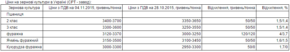 З 28 жовтня по 4 листопада мінімальні ціни на пшеницю третього класу на внутрішньому ринку підвищилися на 1,5%, або на 50 гривень до 3 300 гривень/тонна.