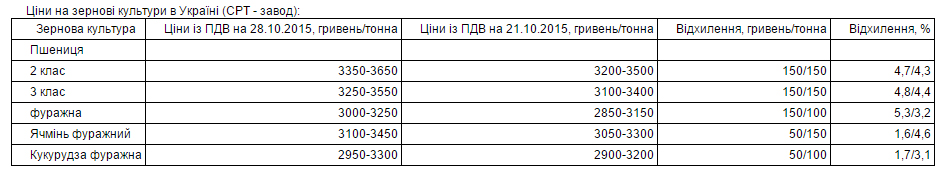 З їх слів, за звітний період на внутрішньому зерновому ринку закупівельні ціни на пшеницю 2 і 3 класів збільшилися в середньому на 150 гривень на тонні у зв'язку з дефіцитом зерна на внутрішньому ринку й стабільно високим попитом на українське зерно з боку країн-імпортерів.